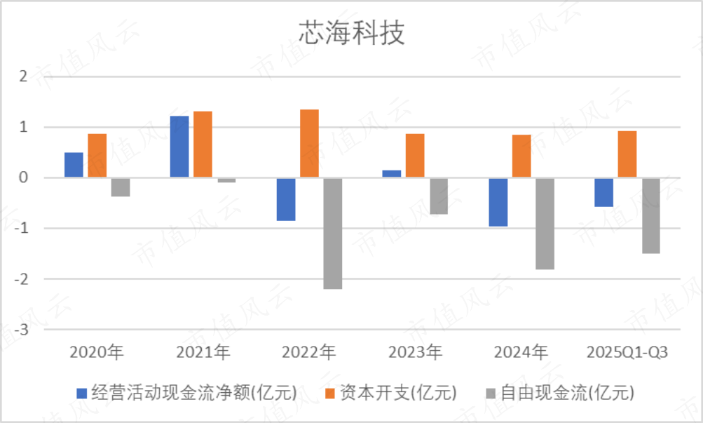 扣除掉不菲的资本开支以外,自由现金流常年为负,2020年至今累计失血6.7亿元。
