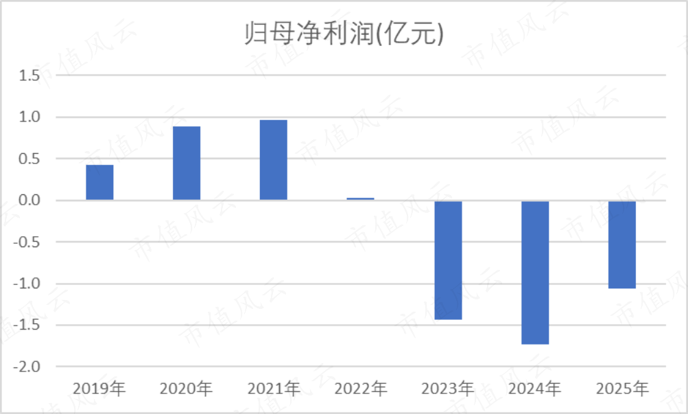 归母净利润的变动更为明显,继2022年大跌后,2023年直接亏损了1.43亿元,2024年亏损金额进一步增加至1.73亿元。直到2025年,才出现减亏信号,归母净亏损收窄至1.06亿元。