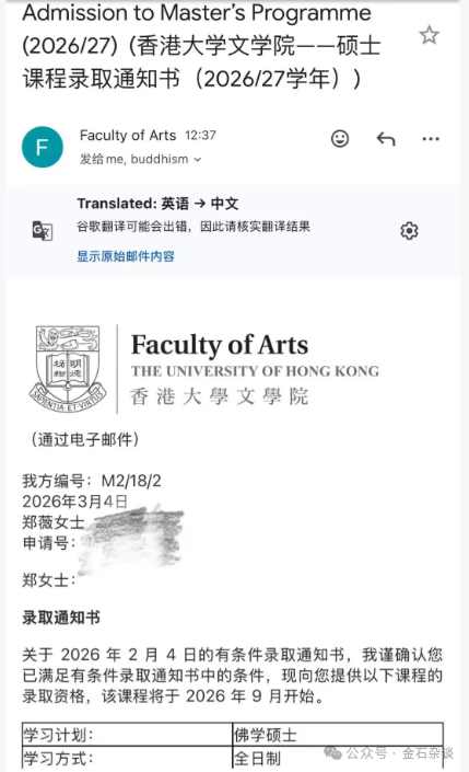 去香港大学文学院读佛学硕士!