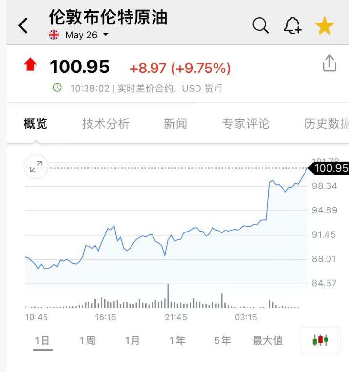 3月12日,国际油价大涨。截至发稿,布伦特原油大涨10%,重回100美元上方。