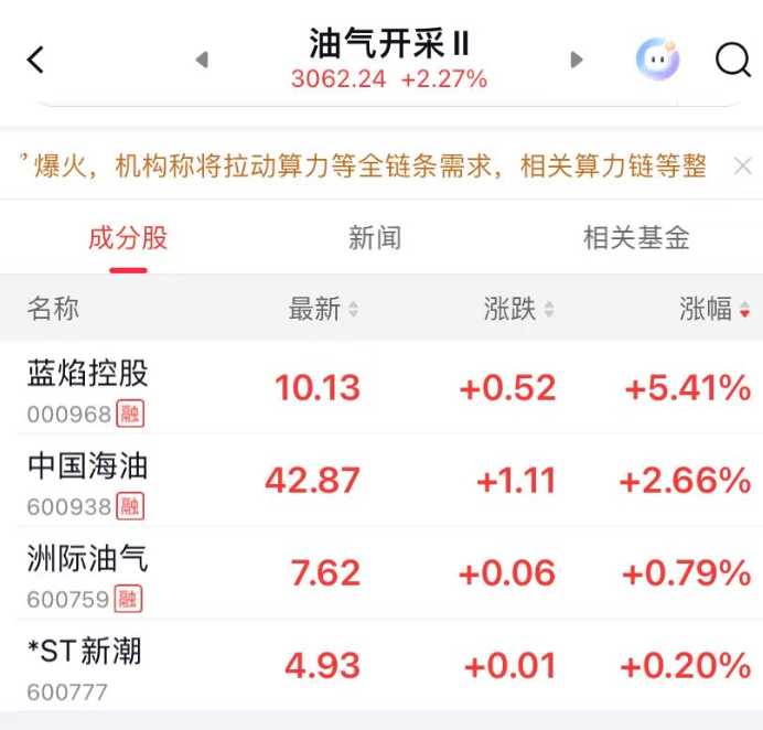 A股燃气、油气开采板块大涨。