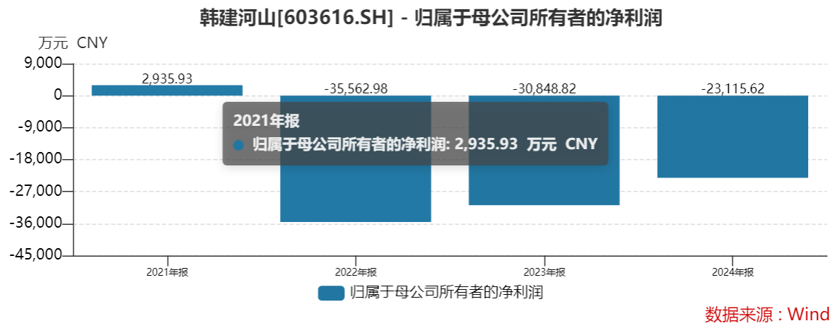 更早前的2022年至2024年,韩建河山归属于母公司所有者的净利润分别为-3.56亿元、-3.08亿元和-2.31亿元,已连续三年亏损。